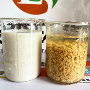 綠森環保技術團隊應某化妝品客戶要求上門技術服務,現場給客戶廢水破乳劑中試??蛻魪U水:沐浴露廢水,特點:含有乳化劑、增稠劑、抗氧化劑、防腐殺菌劑和香精色素等,廢水顏色:淺黃色。使用破乳劑破乳后廢水上清液清澈透明,如下圖       &nbs···